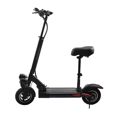 - Благодаря мощности в 500 Вт, электросамокат легко справляется с подъемами и позволяет достигать скорости до 45 км/ч. Преодолеваемый угол наклона 30°
